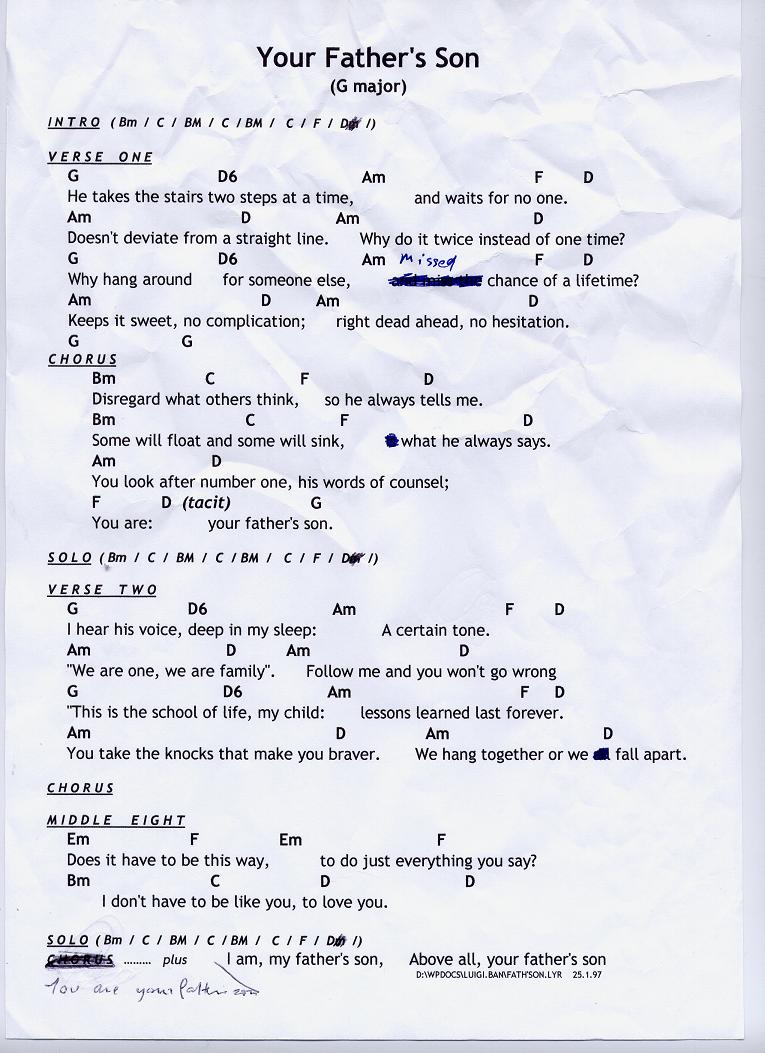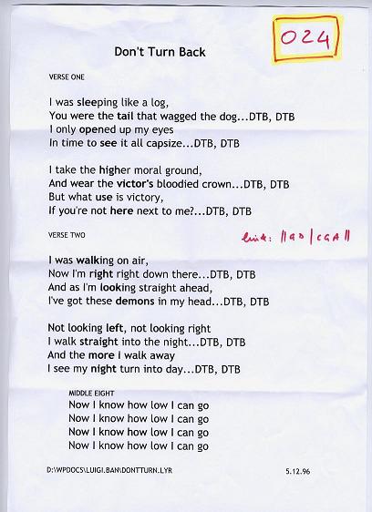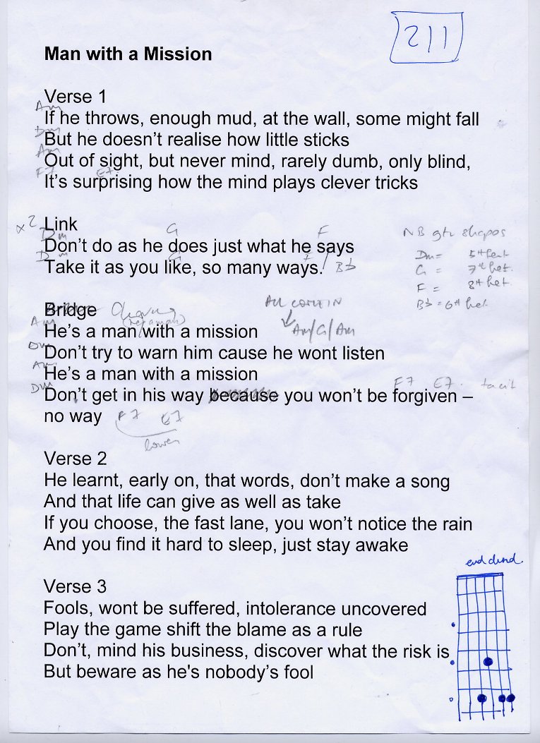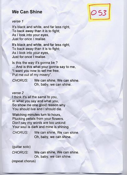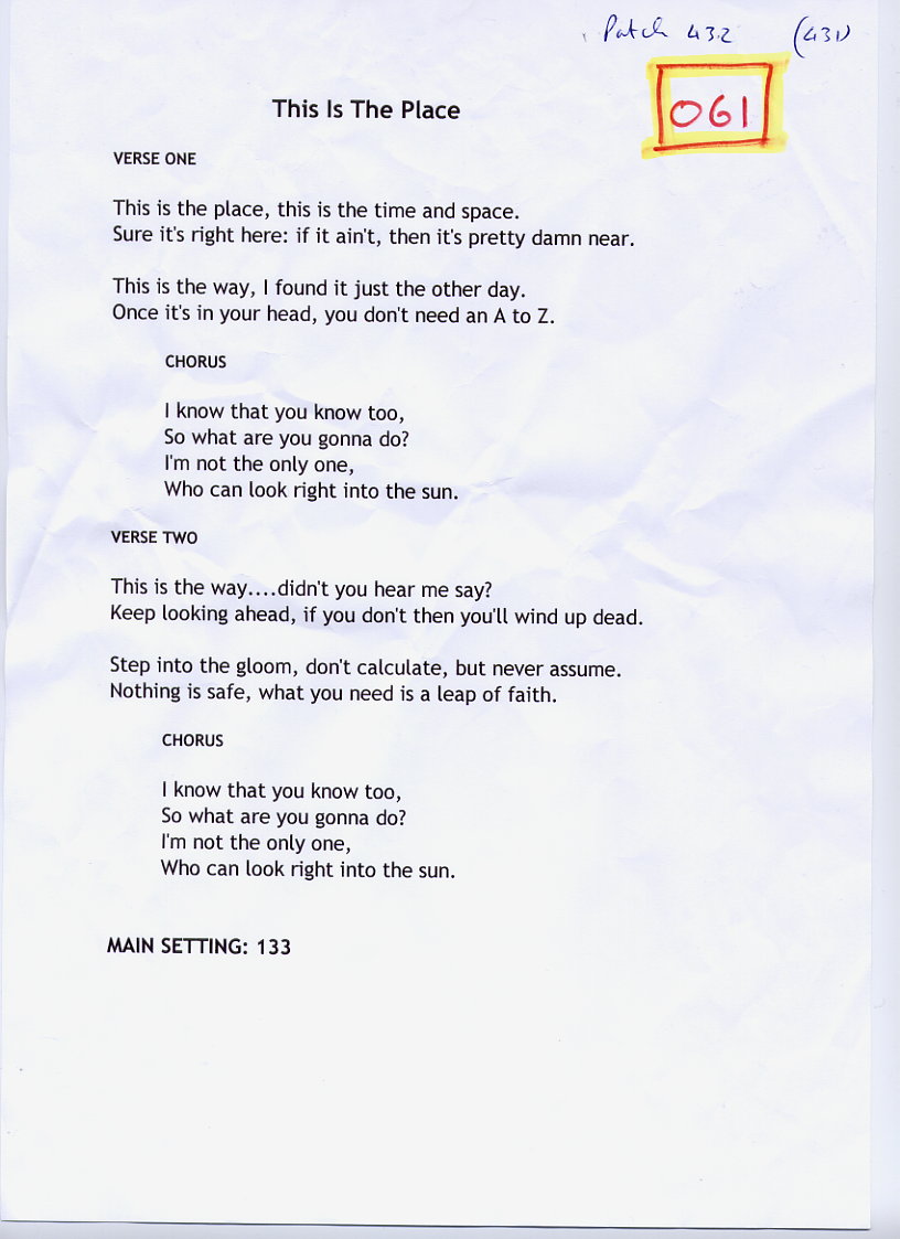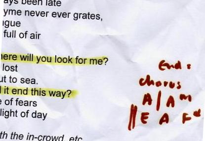 The lyric sheets presented here are the genuine, unedited and - pretty obviously - unadorned lyric sheets straight out of the Eat the Lemon inner sactum. Oh, and one other point: any resemblance or reference to any one living or dead is entirely coincidental and unintentional.