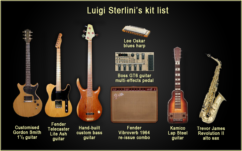 Luigi Sterlini Long standing member of Eat the Lemon Luigi labours under the tag one structured dude for his browbeating need to ensure that all is catalogued, indexed and archived. Dabbler on sax and harmonica, and master of the improvised guitar solo and four string tickler, Luigi is the band's most prolific writer of impenetrable lyrics. A trait no doubt rooted in his other occupation: legal eagle turned dispenser of civil justice. |